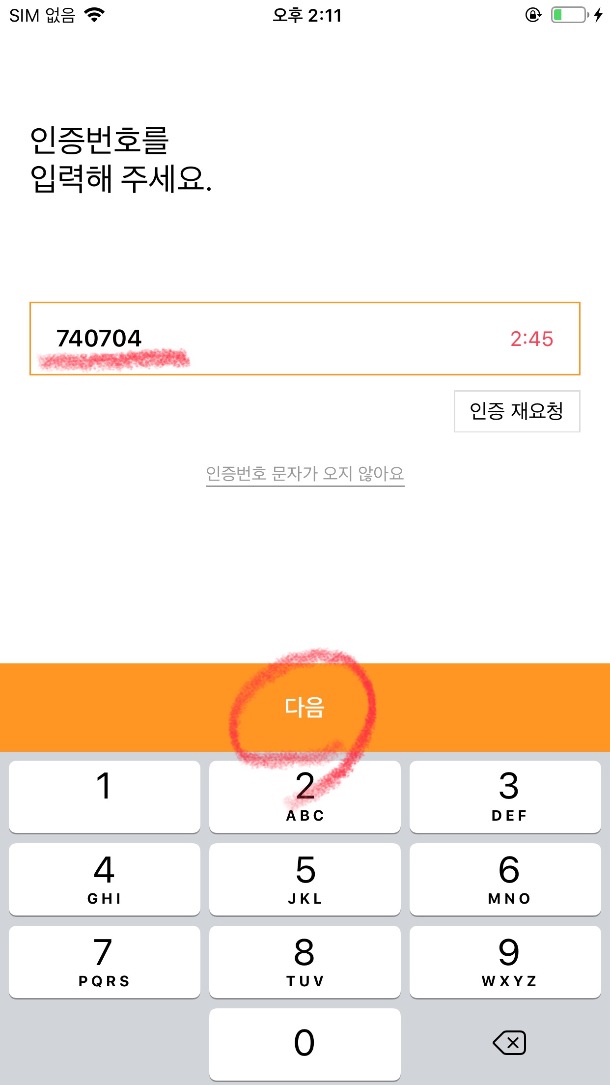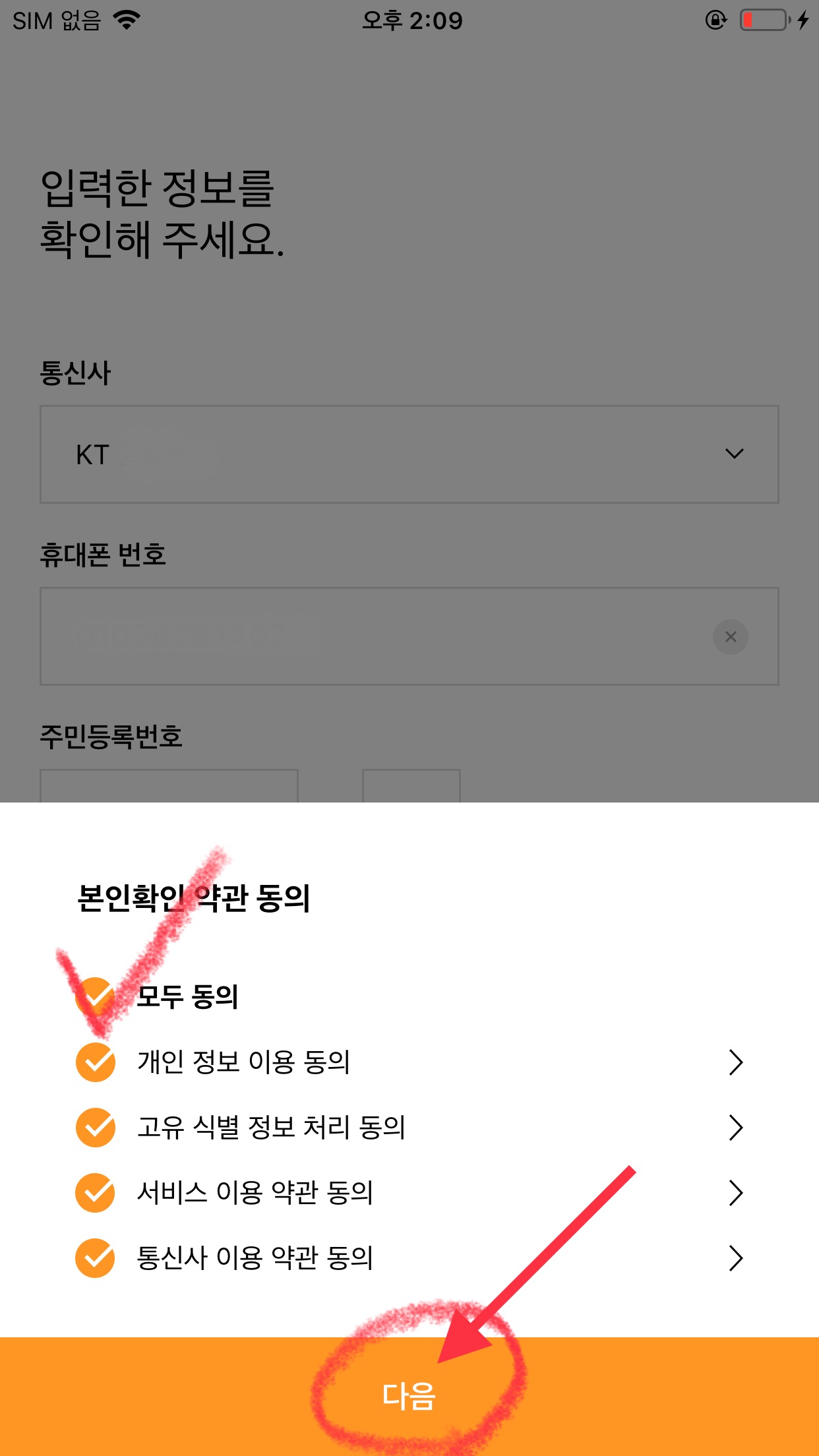 이름과 휴대폰 정보를 입력하고 다음버튼을 누릅니다.
