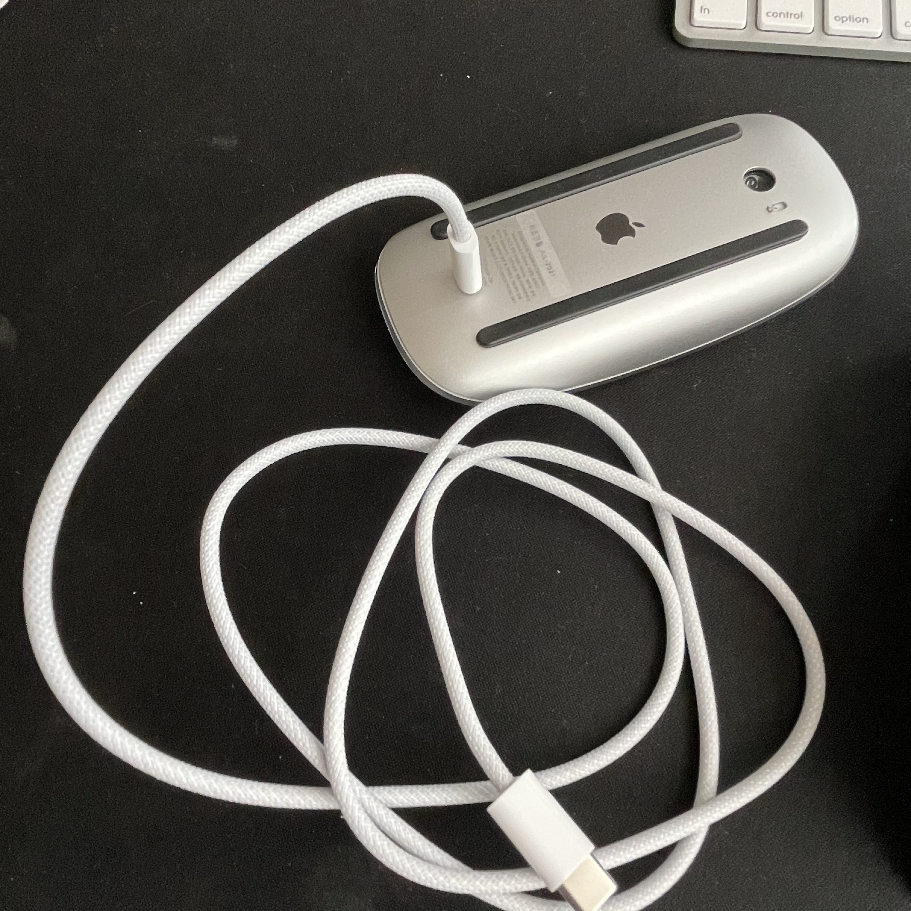 새 매직마우스2 캐이블은 튼튼한 우븐 재질로 되어있어 오래 사용할 수 있을것 같습니다.