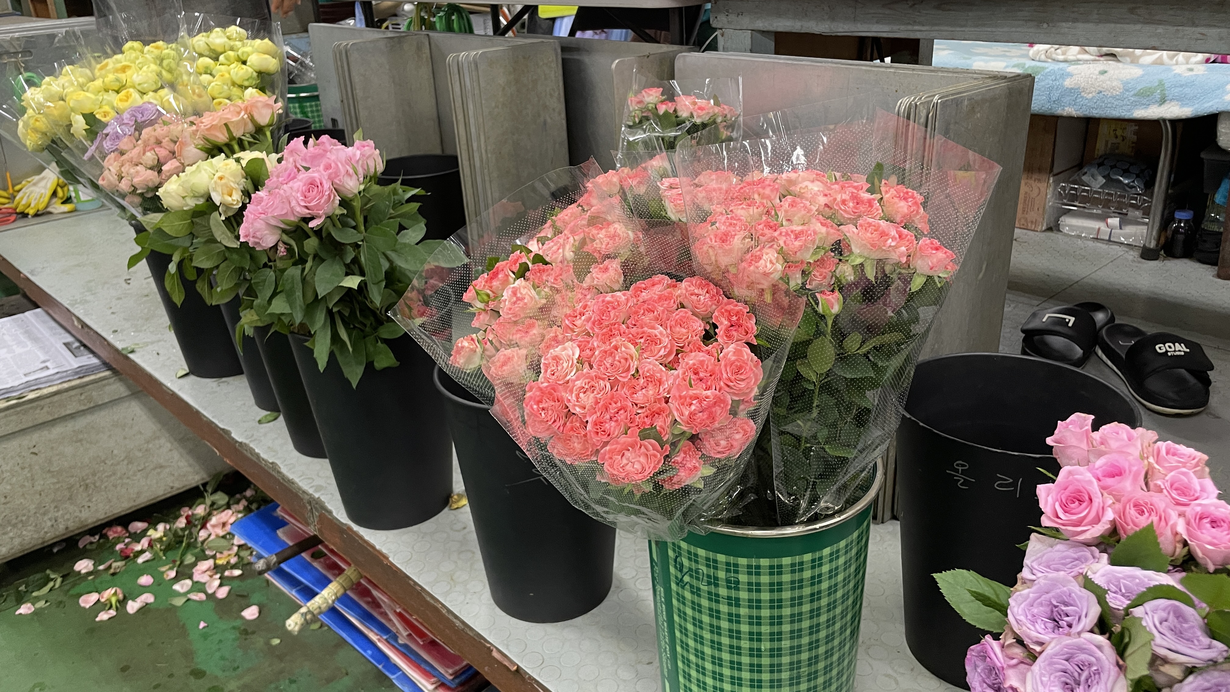 친구와 함께 와서 산 꽃을 종류별로 나눠가지면 다양한 꽃을 저렴하게 구매할 수 있습니다.
