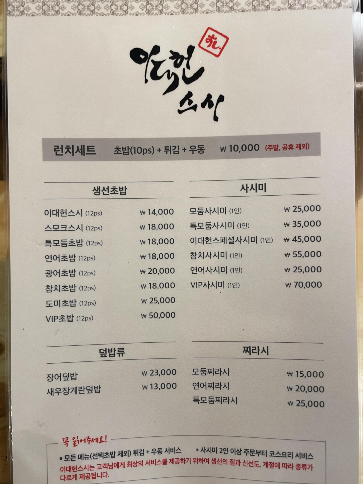 오늘은 을지로3가에 위치한 초밥집 이대헌 스시에 방문했습니다.