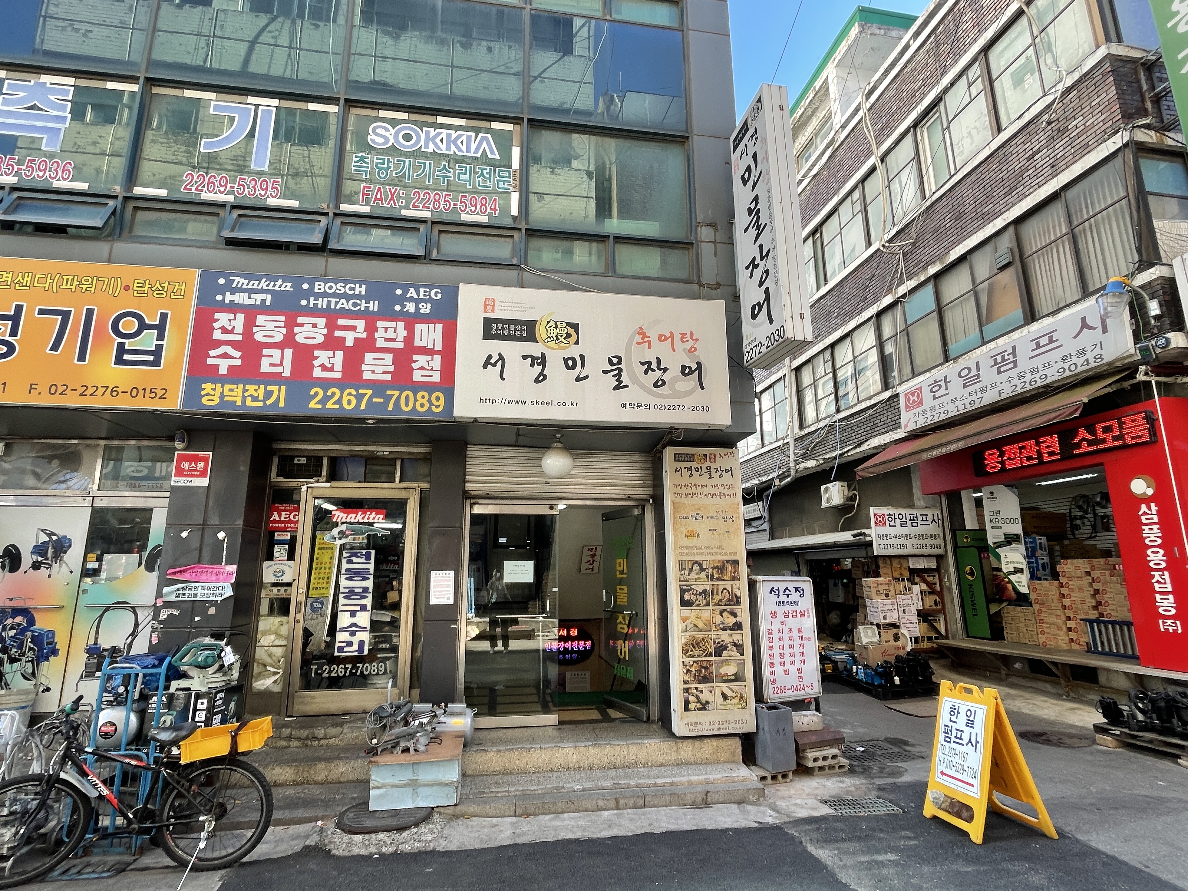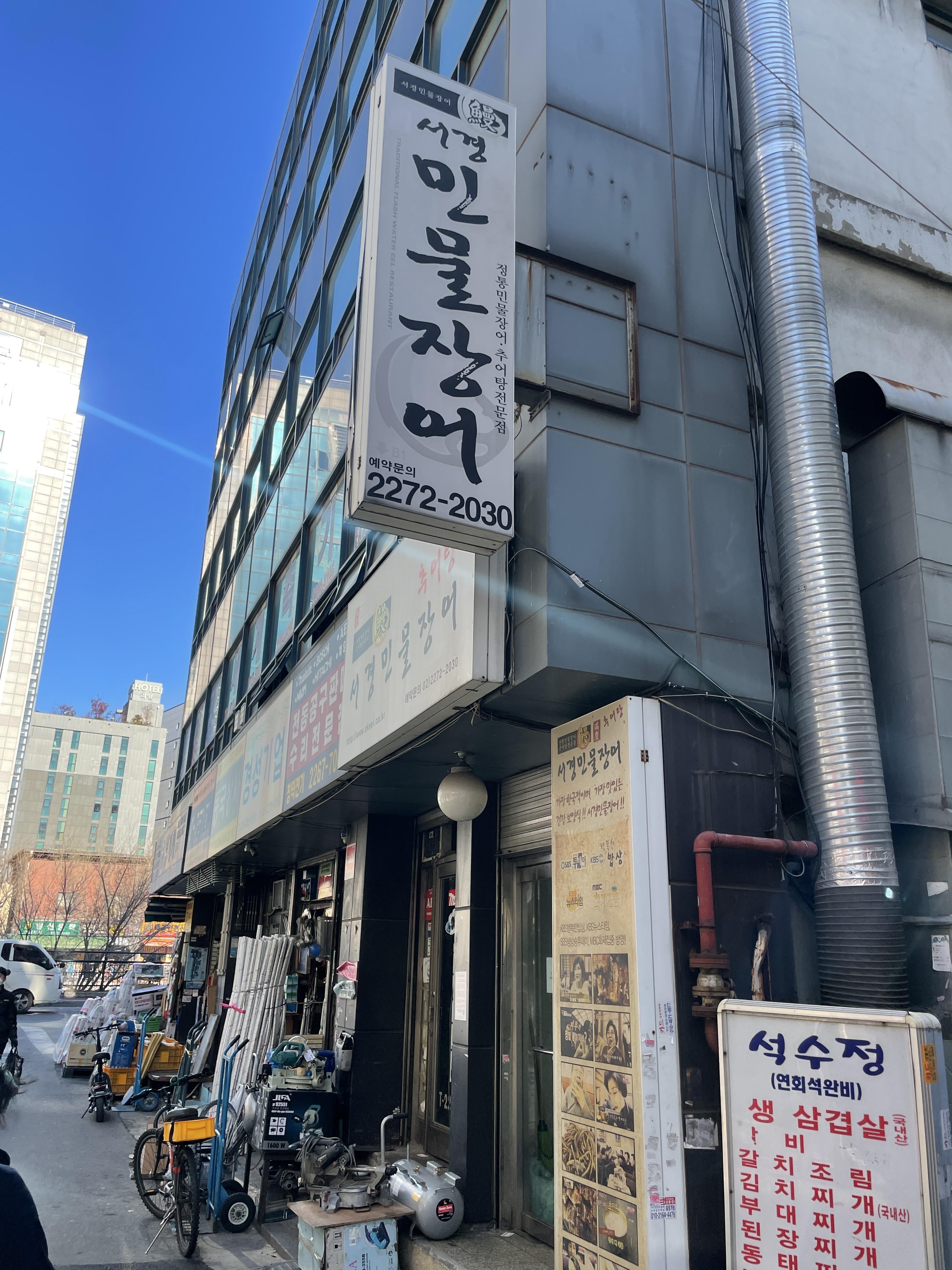 을지로3가역 4번출구에서 청계천 방향으로 3분정도 걸으면 나오는 서경민물장어