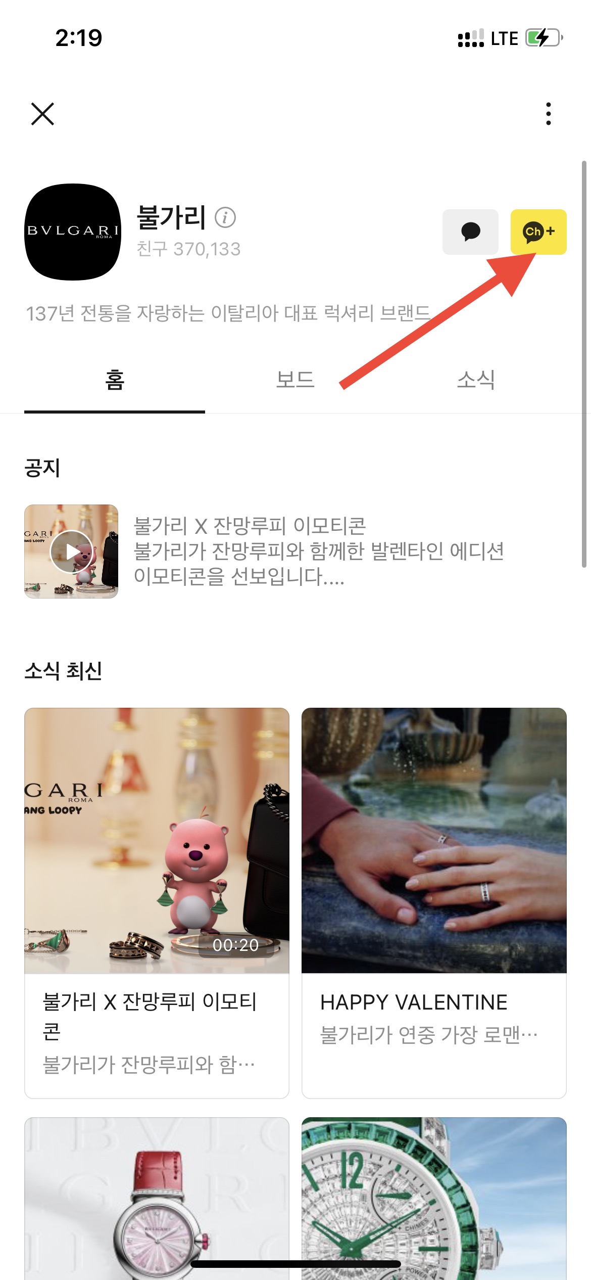 1) 불가리 카카오톡 채널에 접속합니다