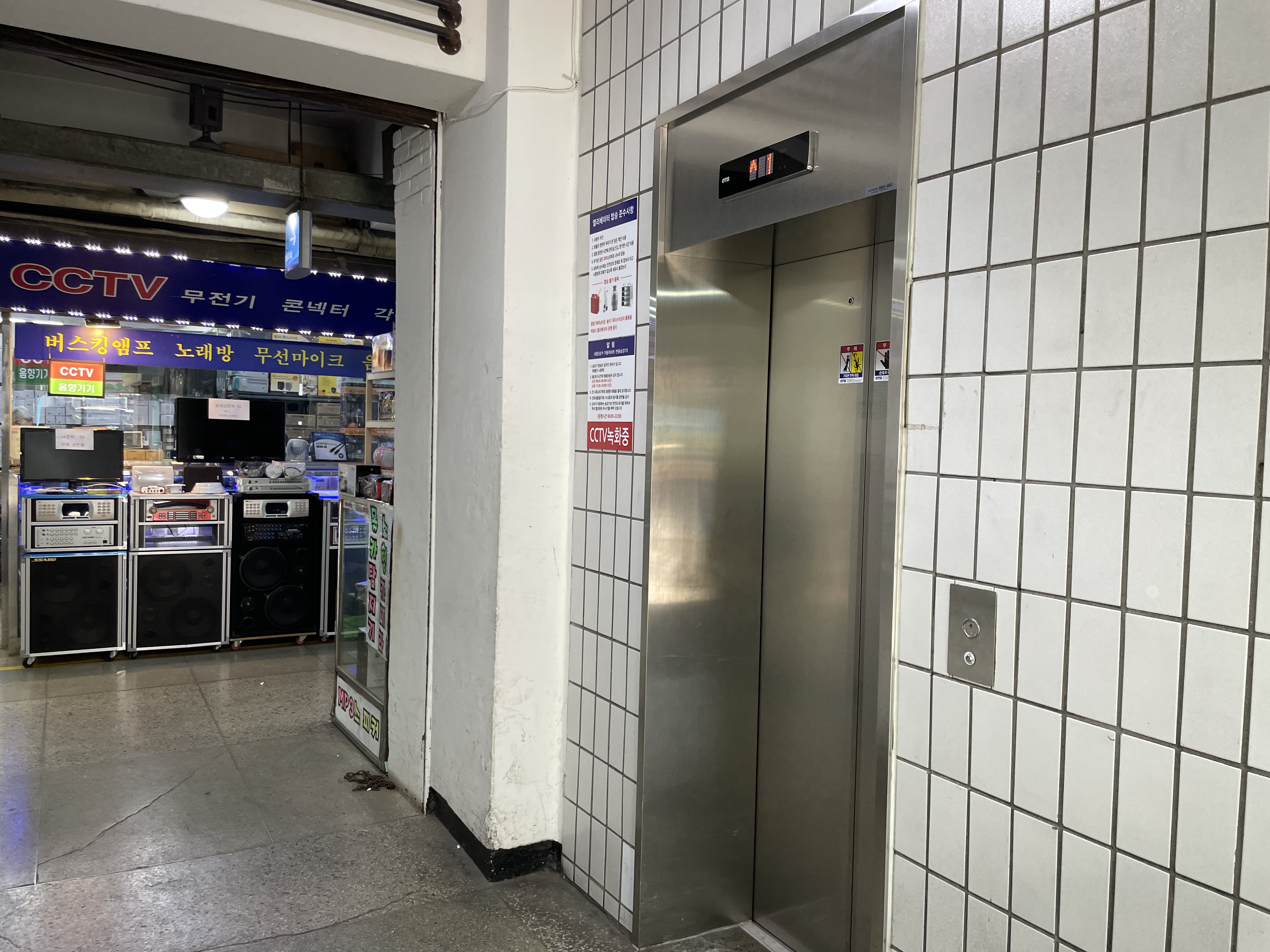 이 엘리베이터를 타고 세운상가 8층으로 이동합니다