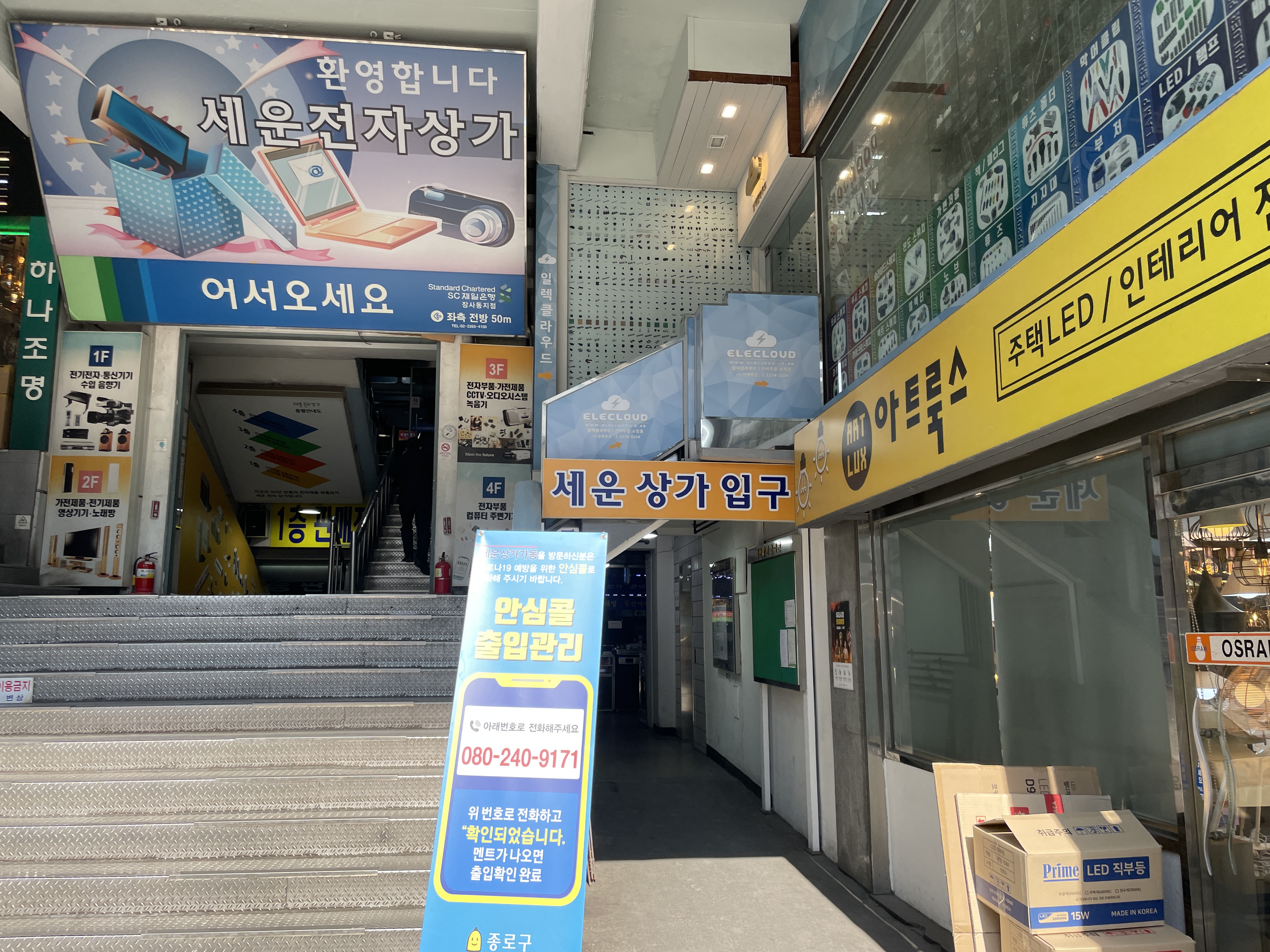 세운상가에 위치한 하이스캔은 복잡한 상가를 지나