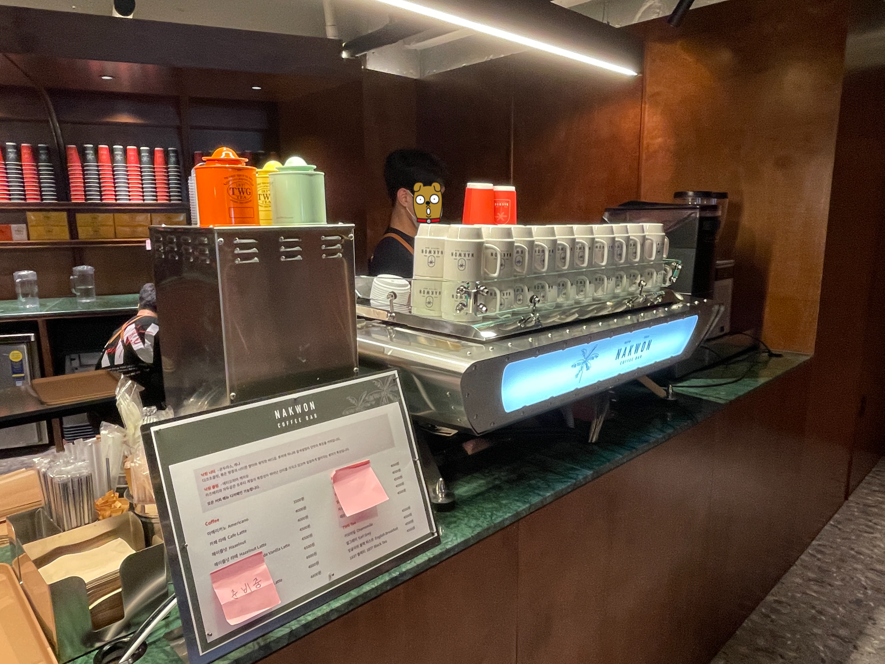 커피머신과 다양한 TWG 차가 준비되어있었습니다